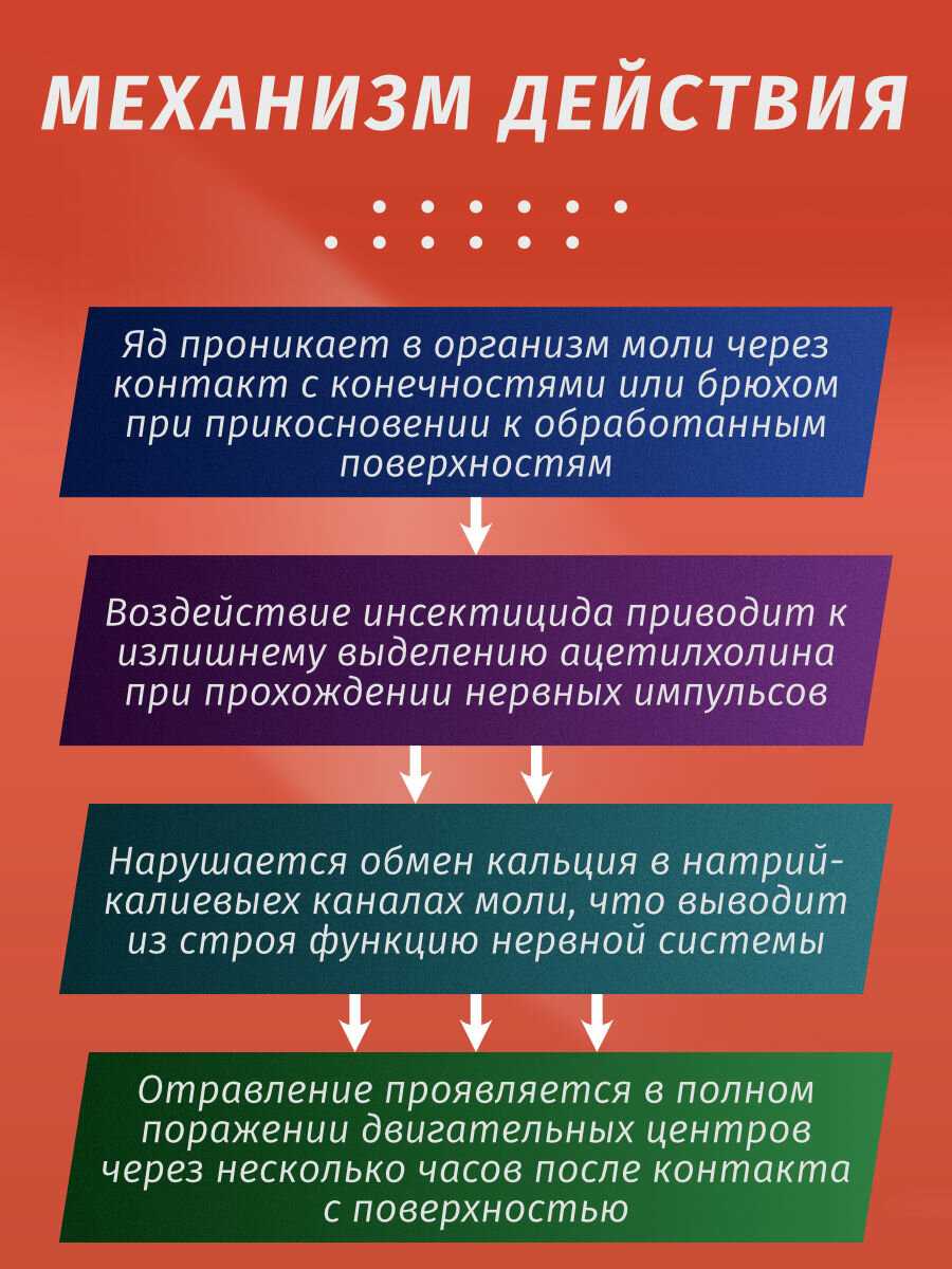 опрыскала стены, полки и пол. при попадании струи на моль она сразу погибает. в целом моли стало гораздо меньше после первой обработки.