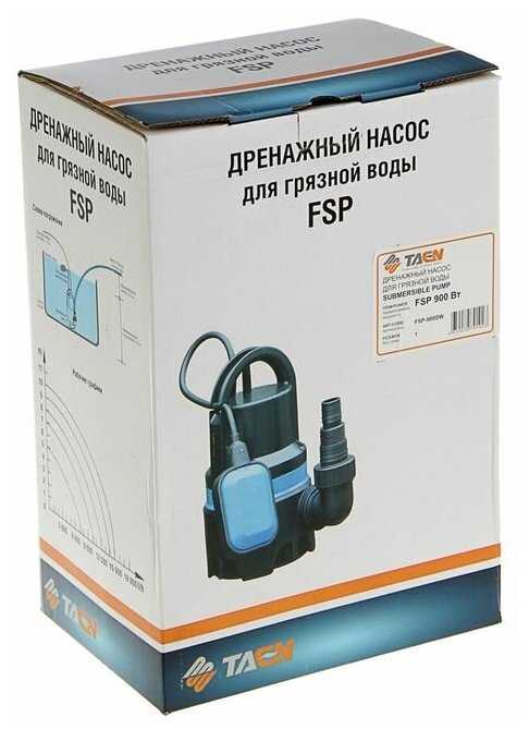 | Подробная комплектация : | Насос дренажный TAEN FSP-900DW, для грязной воды, 900 Вт, напор 9 м |