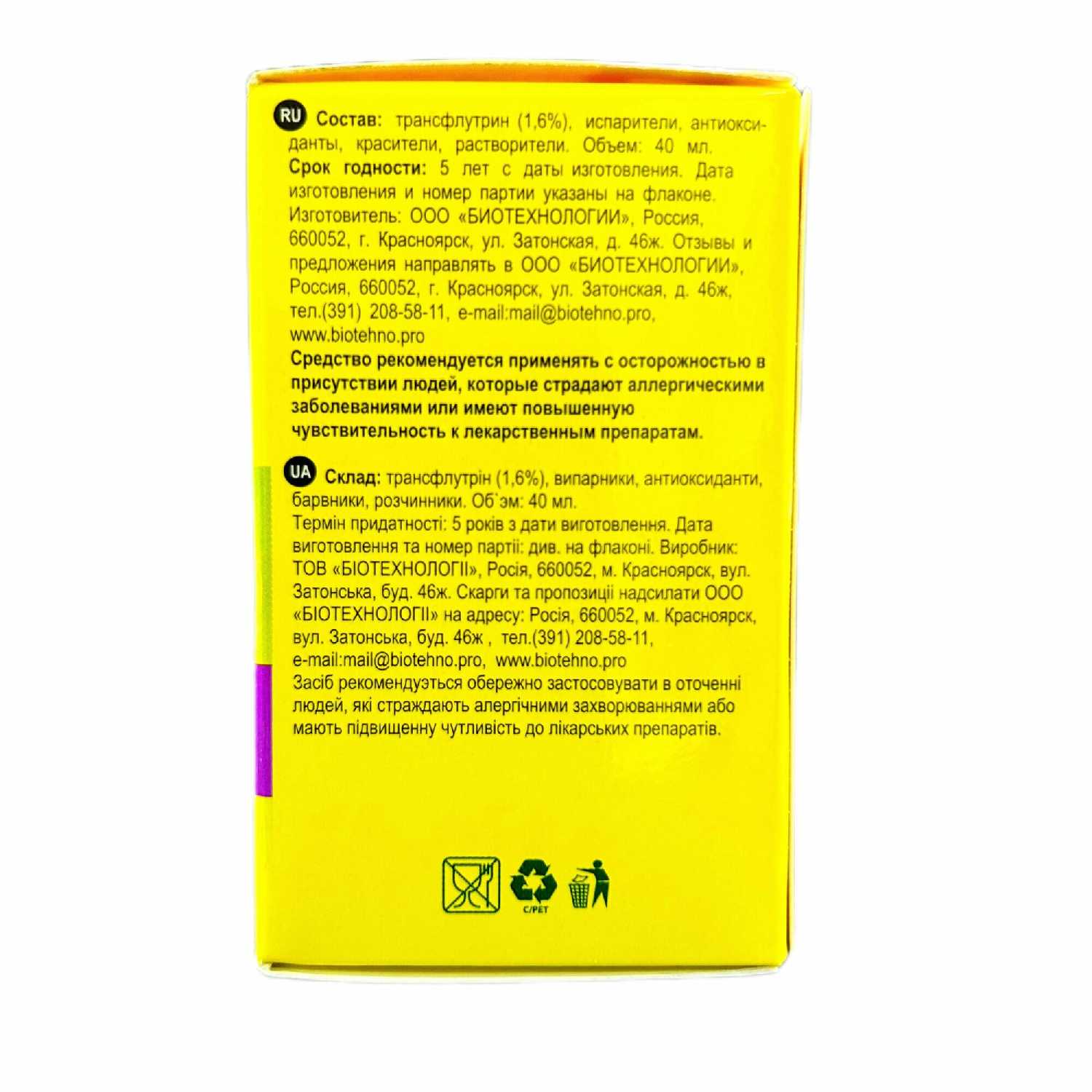| Время действия жидкости для фумигатора : | 60 ночей |