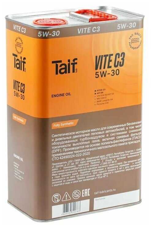 Отзывы о HC-синтетическое моторное масло TAIF VITE C3 5W-30