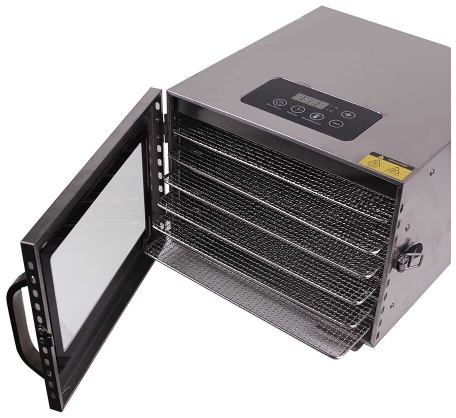 небольшая сушильная камера, размером с микроволновку, 6 сетчатых поддонов для сушки.