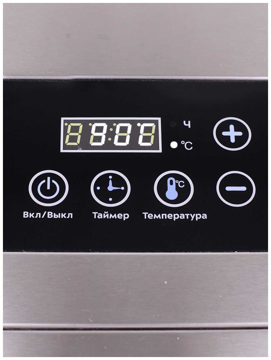 - + Температуру в дегидраторе можно регулировать от 30 до 90 градусов.