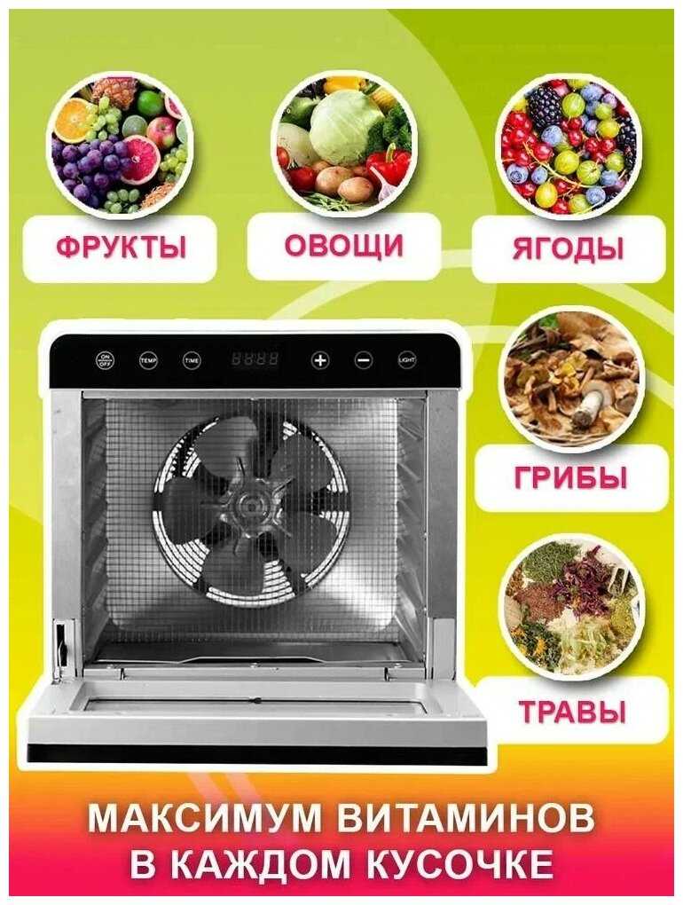 - Точная настройка под разные типы продуктов: низкие температуры для трав и проростков, высокие — для мяса или сухарей.
