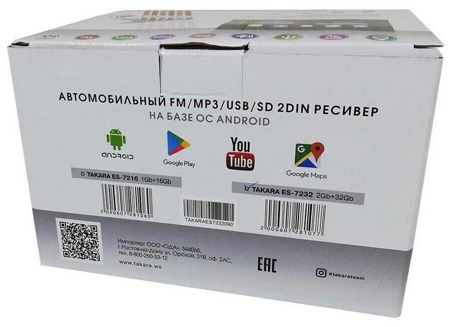 Характеристи TAKARA ES-7232 2DIN, 2+32Gb, 8.1 Android, 4x45Вт, 7 дюймов, GPS/ WiFi/ Bluetooth