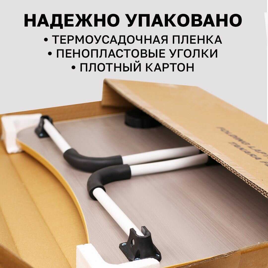 - + Очень удобный столик, был хорошо запакован. Пришёл целый. Работа за ноутбуком стала отдыхом)