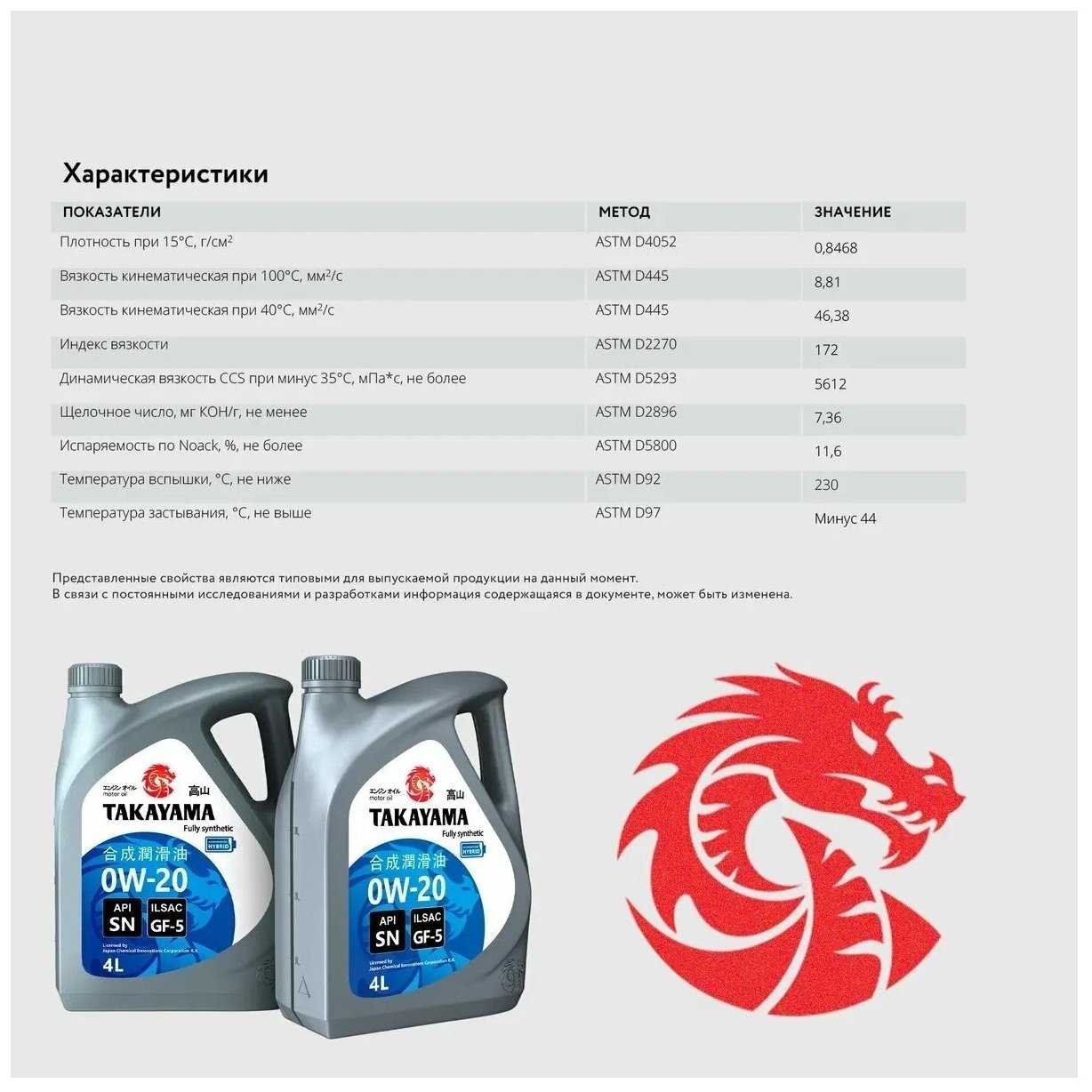 Характеристи Takayama 0W-20 (GF-5 API SN)