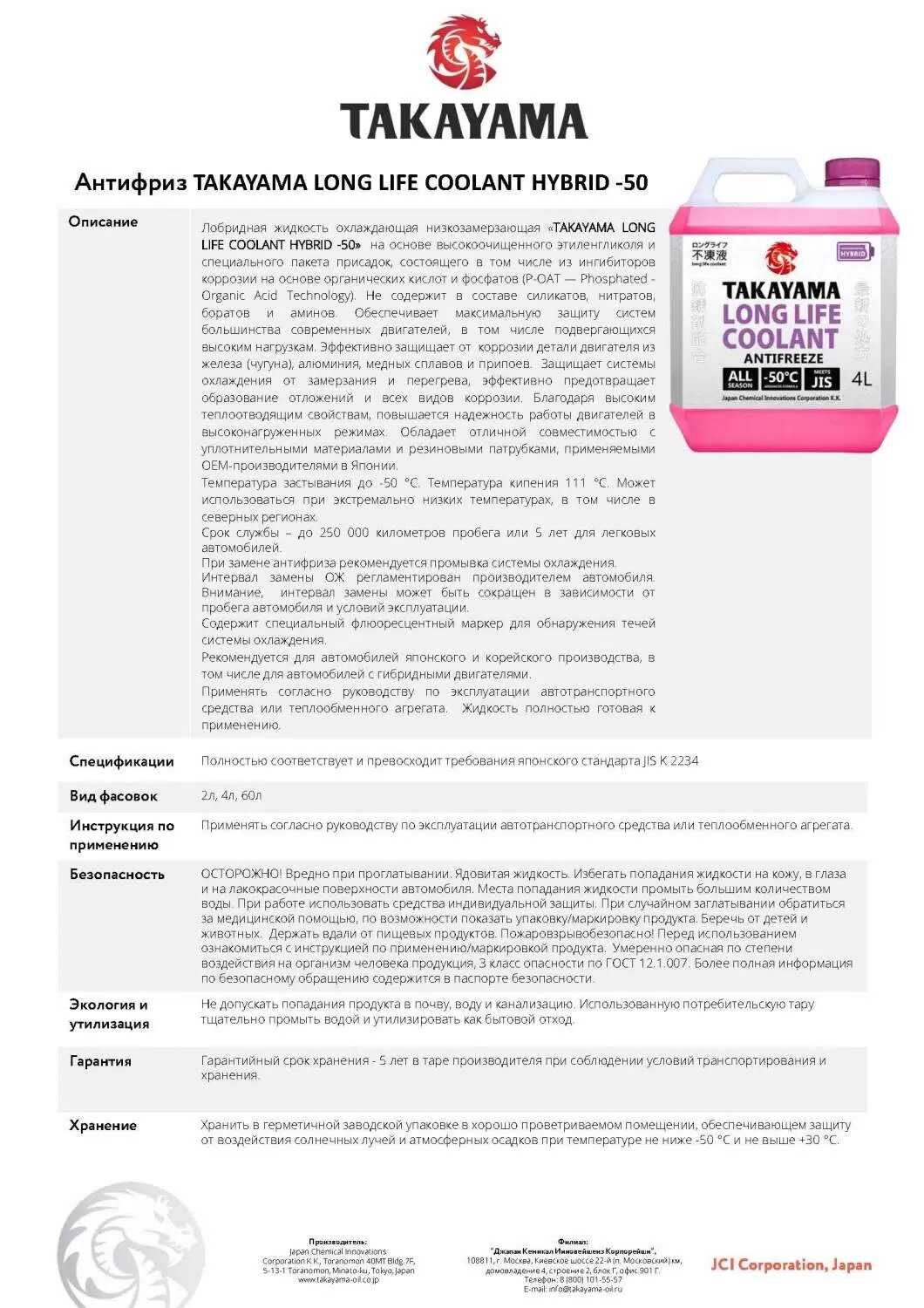 Отзывы о Антифриз TAKAYAMA LONG LIFE COOLANT HYBRID (-50)
