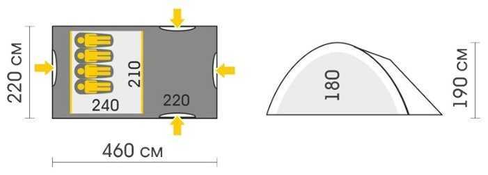 отличная палатка! вместительная, непромокаемая, шикарно себя показала в походе. очень рада, что выбор пал именно на нее!