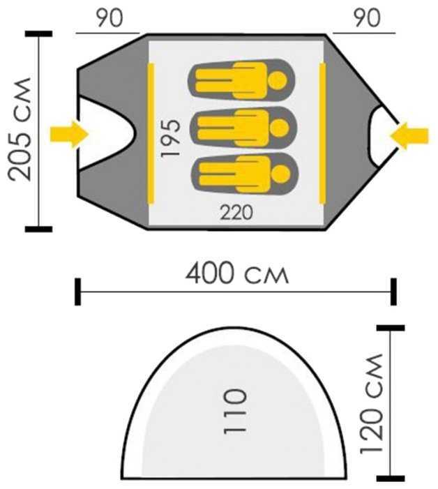 - + Вес и размер. Вместились всей семьей (2 взрослых и 3 детей). Трое взрослых и ребенок спокойно разместятся. Вместились чтобы провести время в непогоду, а не для сна. Два тамбура - это удобно. В одном все лежит, через второй ходим.