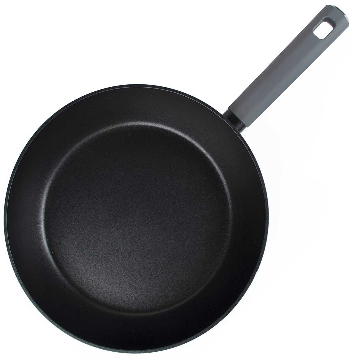 - Глубина бортов (7,5 см) и диаметр (28 см) позволяют готовить большие порции, например, картофель или овощи для пассерования, без разбрызгивания.