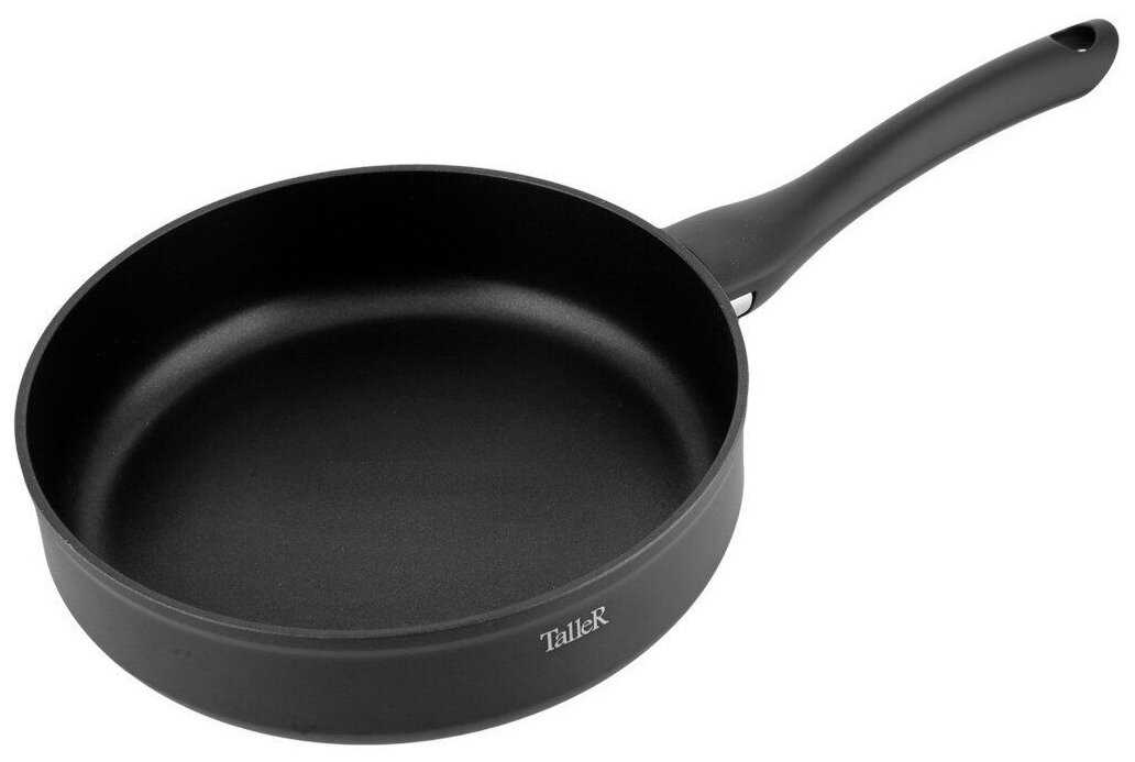 Сковорода имеет диаметр 28 см и глубину 7.5 см, что делает её подходящей для семейного приготовления пищи. Высокие бортики предотвращают выпадение ингредиентов при перемешивании, а форма дна (ровная или слегка выпуклая, по разным отзывам) способствует распределению масла. Однако выпуклость центра у отдельных экземпляров вынуждает использовать больше масла, чтобы покрыть всю поверхность. Толщина дна, по мнению части пользователей, недостаточна для идеального прогрева на индукции, хотя на газовых плитах это не критично. Вес сковороды варьируется: некоторые называют её «тяжёлой и надёжной», другие — «лёгкой и неустойчивой», что может быть связано с разными моделями в линейке Taller.