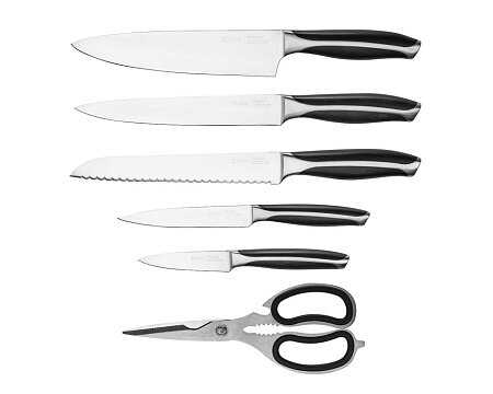 | Состав набора ножей : | нож для овощей, нож для хлеба, разделочный нож, универсальный нож, филейный нож, шеф-нож |