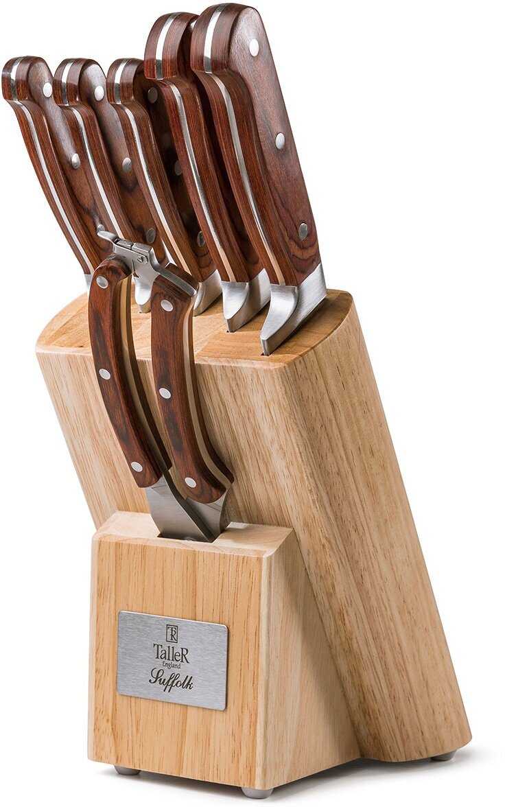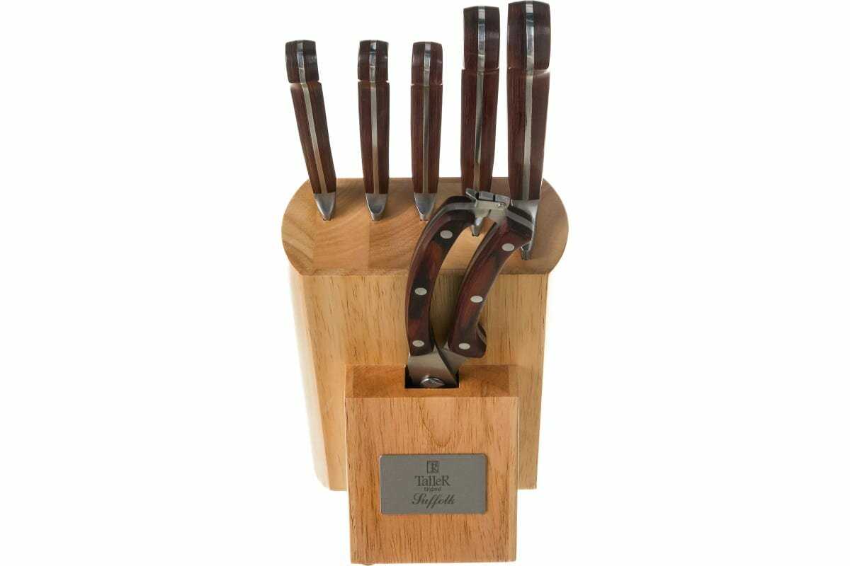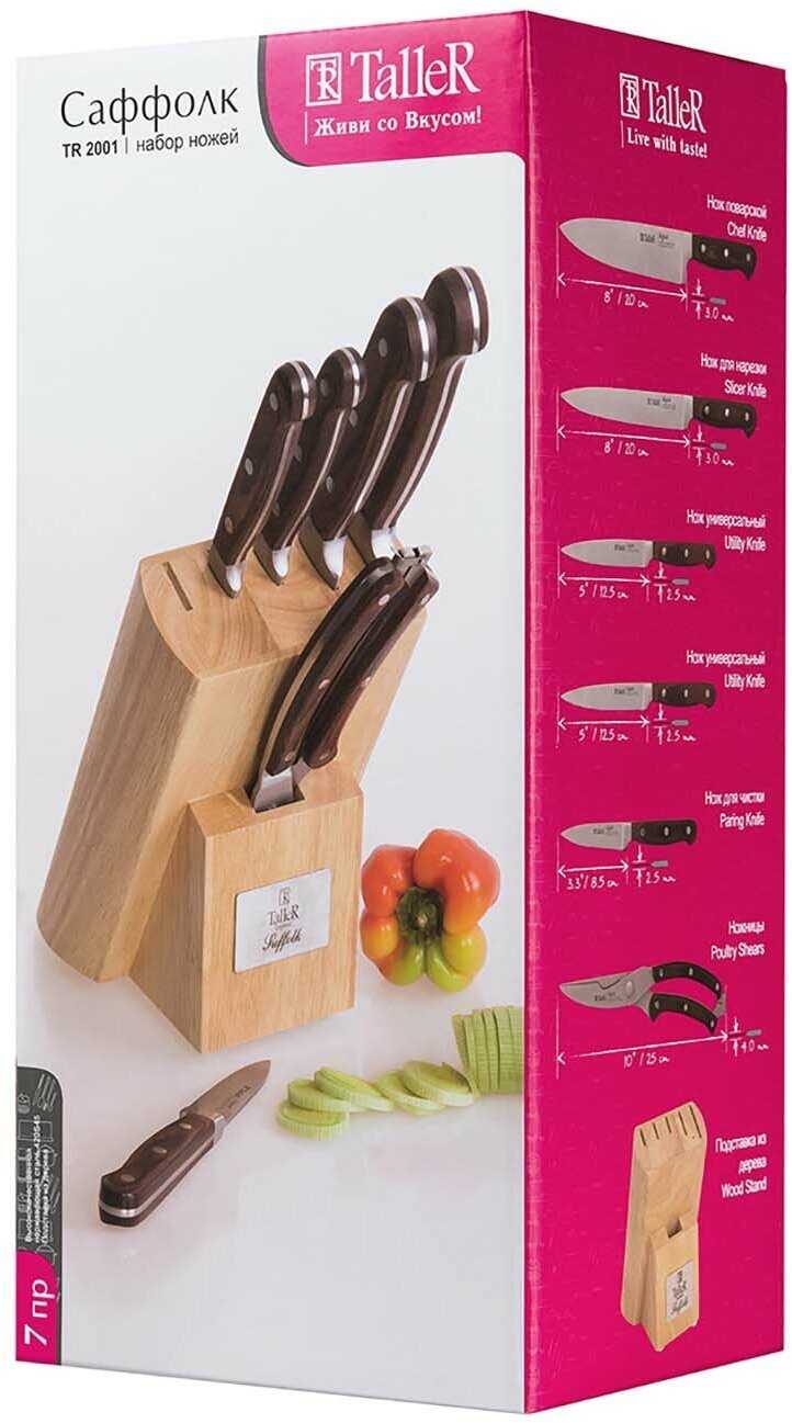 Набор идеально подходит для домашних кухонь, где ценится баланс цены, внешнего вида и достаточной функциональности ("для домашних кухонных дел вполне подходят"). Он также хорошо подходит для подарка благодаря презентабельному виду с подставкой. Пользователи, сравнивая с конкурентами в схожем ценовом сегменте (упоминаются Gipfel, Tefal), часто отдают предпочтение Taller из-за более привлекательного дизайна (особенно рукоятей и подставки), кажущегося более премиального вида и полной комплектации. Хотя сталь может быть мягче, чем у некоторых аналогов (прямо упоминается молибден-ванадиевая), пользователи отмечают, что этот недостаток компенсируется легкой затачиваемостью и адекватной ценой. Главные преимущества перед конкурентами – стильная подставка, удобный (несмотря на замечания) хват деревянных ручек и острота на момент покупки. Набор воспринимается как выгодное соотношение цены и качества в своем сегменте, особенно со скидками или бонусами.