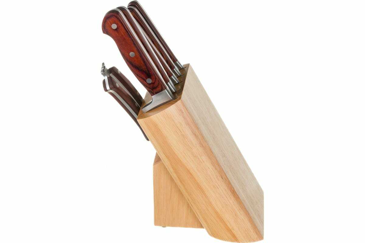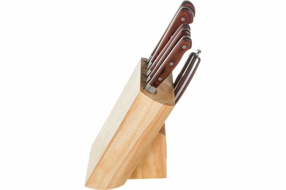 Отзывы с опытом использования 5–7 лет подтверждают долговечность: ножи сохраняют работоспособность, несмотря на возможные незначительные дефекты, такие как разбухание дерева ручек или легкий изгиб кончика. При регулярной заточке и аккуратном обращении комплект служит десятилетиями, как отмечает пользователь, эксплуатирующий набор более 15 лет. -