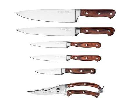 Набор высоко оценивается за свою полноту и продуманность комплектации ("самый полный набор ножей", "есть все необходимое для домашнего использования"). Пользователи, включая профессионального шеф-повара, находят все размеры и типы ножей для различных кухонных задач. Особо отмечаются мощные ножницы ("как секатор"), которые эффективно справляются с перерубанием костей птицы, плавников рыбы и разделкой кур, что позволяет беречь лезвия ножей. Однако есть и критика: маленький нож для очистки овощей признан неудобным для этой задачи, а ножницы, несмотря на мощность, критикуют за чрезмерную тяжесть и неудобство в руке. Некоторые пользователи отмечают избыточность или схожесть размеров отдельных ножей ("три ножа почти одинакового размера").
