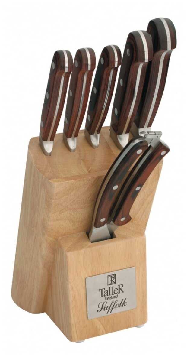 - + На первый взгляд выглядят добротно, тяжелые, в руке лежат удобно, как влитые. С завода заточены хорошо, резать ими одно удовольствие. На сколько хватит заточки пока сказать не могу, пользовались мало. По комплектации есть все необходимое для домашнего использования. Очень презентабельный внешний вид, по цвету как раз подошли к нашей кухне. Подставка для ножей очень удобная, не занимает много места, всегда под рукой и выглядит отлично. Так же помимо ножей в комплекте есть ножницы - приятное дополнение. С фирмой Taller знакомы давно, практически вся посуда дома этого производителя. Впечатления пока только положительные, надеюсь так будет и дальше.