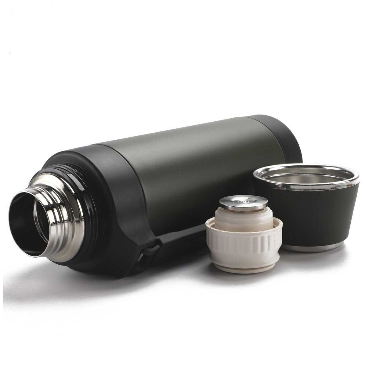 Давно хотели приобрести такой термос. Объём как раз на семью - 1,5 л. Крышка одновременно служит и кружкой, в руках не нагревается. Удобный клапан - нажал и ничего не прольётся. С утра если горячее налить - до обеда не остывает, а так тепло держит до вечера. Очень выручал нас в поездках.