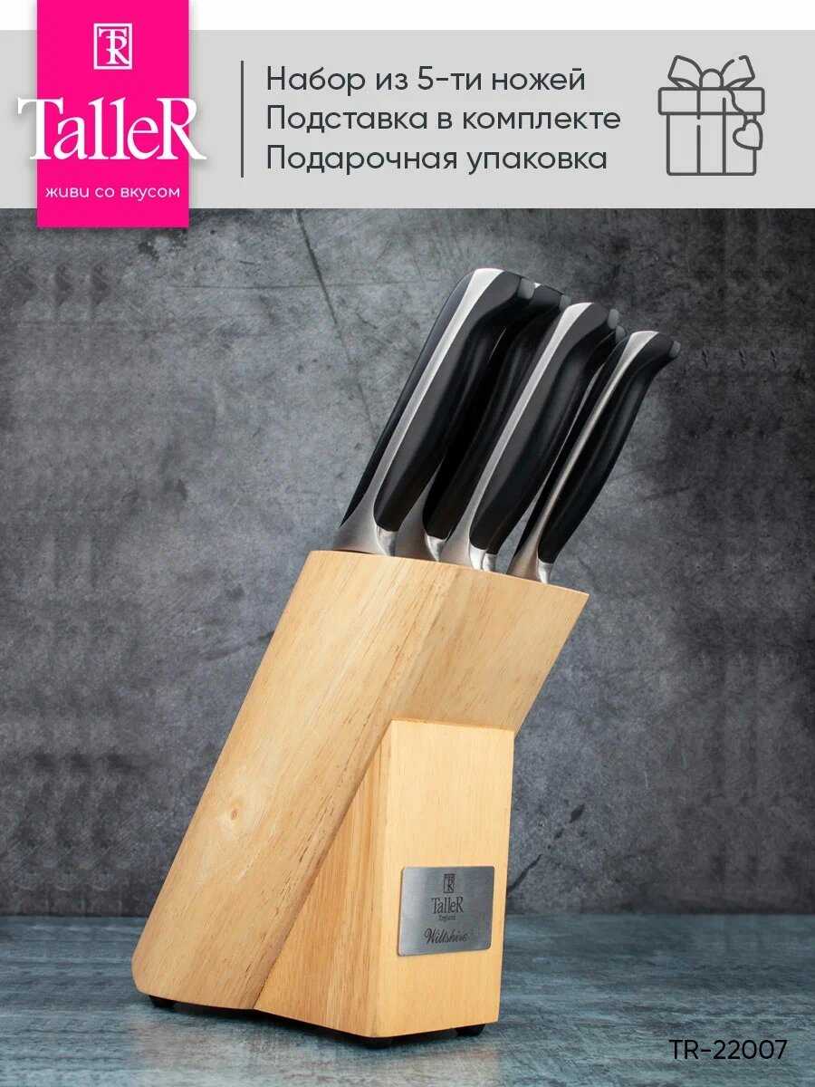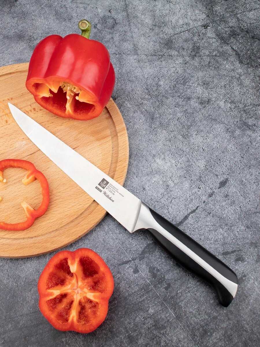 | Подробная комплектация : | нож поварской (лезвие 20 см х 2, 5 мм), нож для нарезки (лезвие 20 см х 2, нож для хлеба (лезвие 20 см х 2, нож универсальный (лезвие 12, 5 см х 2 мм), нож для чистки (лезвие 9 см х 2 мм), подставка |