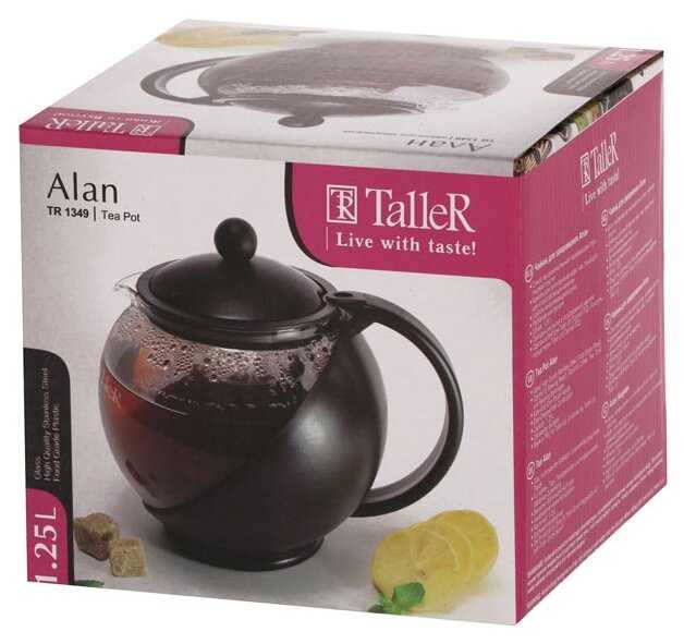 | Дополнительная информация : | Чайник заварочный TALLER Алан 1, 25л стекло, нерж.сталь, пластик |