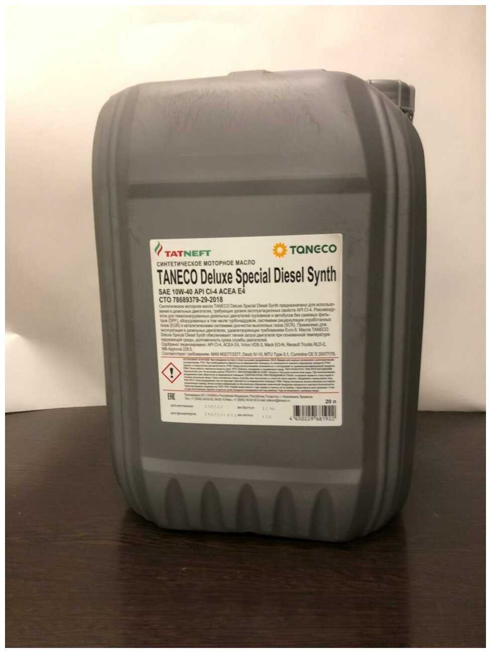 Обзоры и руководства на TANECO DeLuxe Special Diesel Synth" SAE 10w40 20л