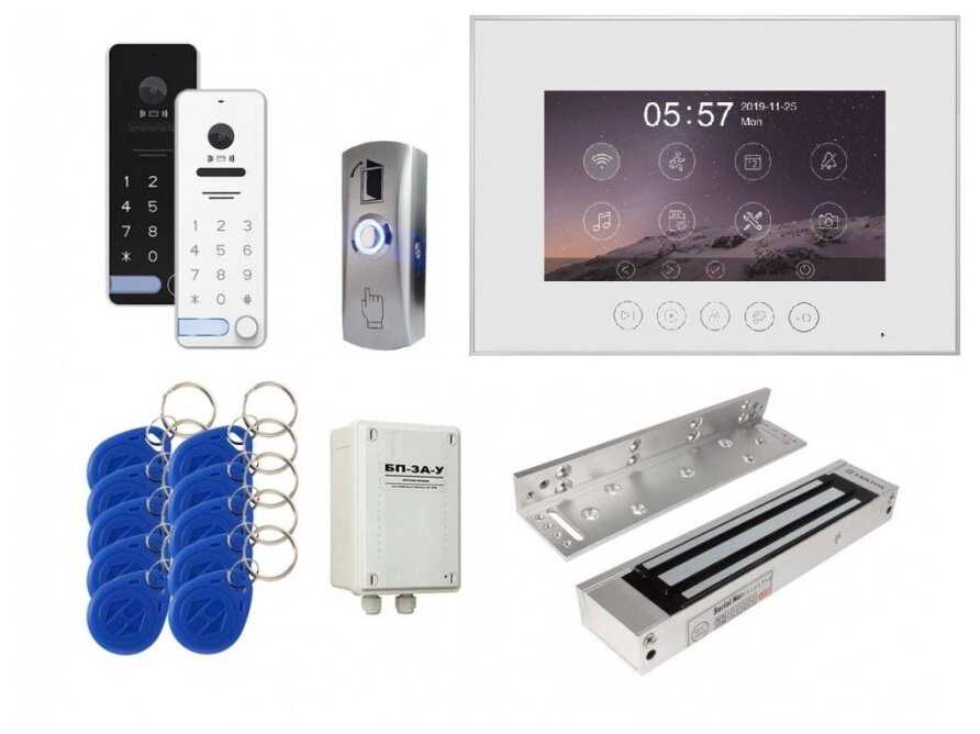 | Дополнительная информация : | Комплект состоит из цветного 7" монитора с сенсорными кнопками, функцией записи по детектору движения - Tantos Marilyn HD s, вызывной видеопанели -iPanel 2 WG EM KBD HD c кодонаборной клавиатурой и электромагнитного замка. Также в комплект входит уличный блок питания, уголок для монтажа электромагнитного замка, кнопка выхода и 10шт бесконтактных брелков. |
