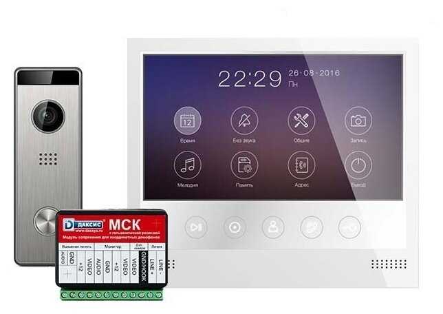 В комплекте есть координатный блок для подключения к подъездной панели. Для цифровых систем требуется отдельный модуль сопряжения. Установщики рекомендуют проверять тип домофона заранее. Большинство успешно интегрирует без проблем. -