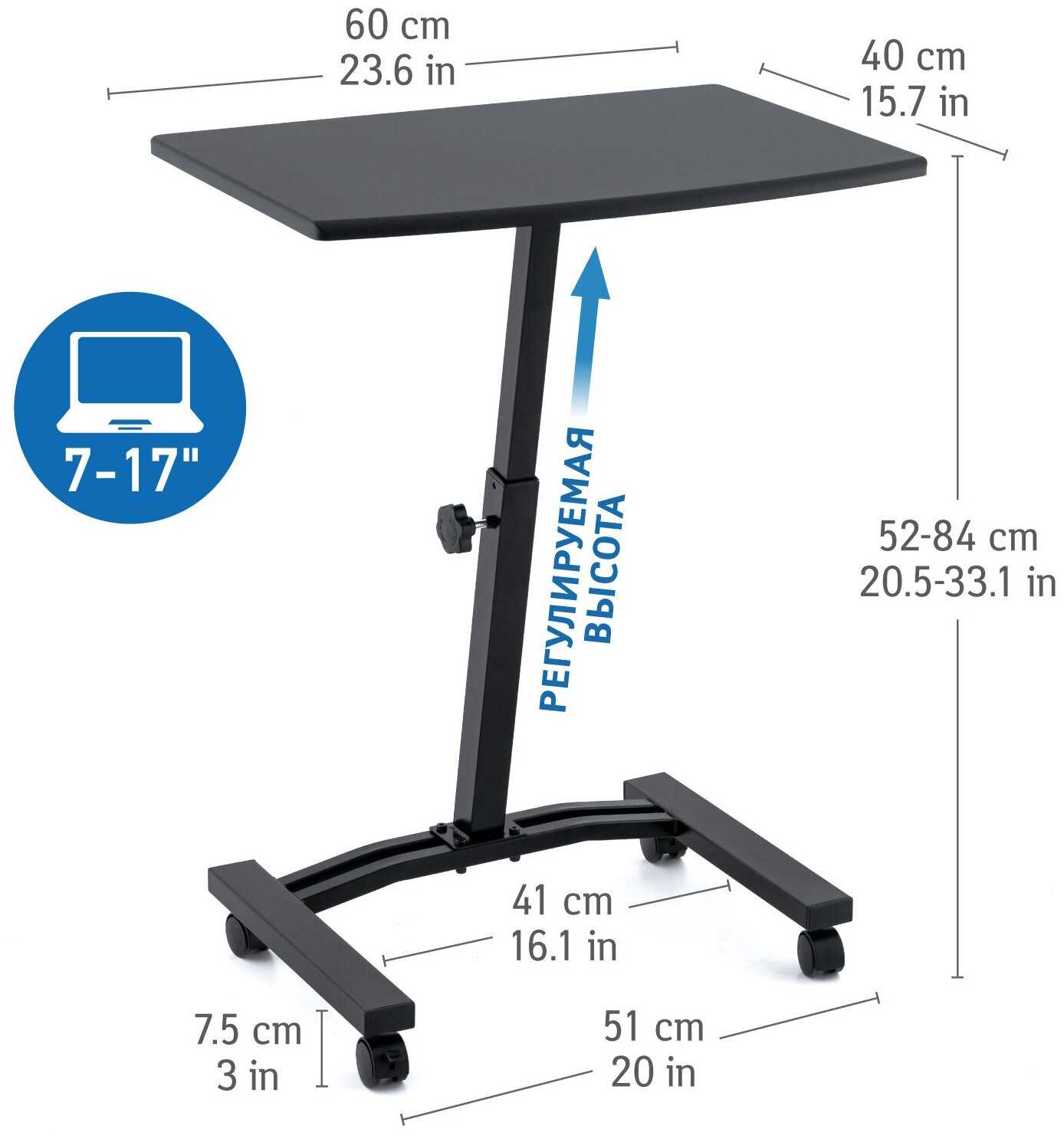 - + можно регулировать по высоте