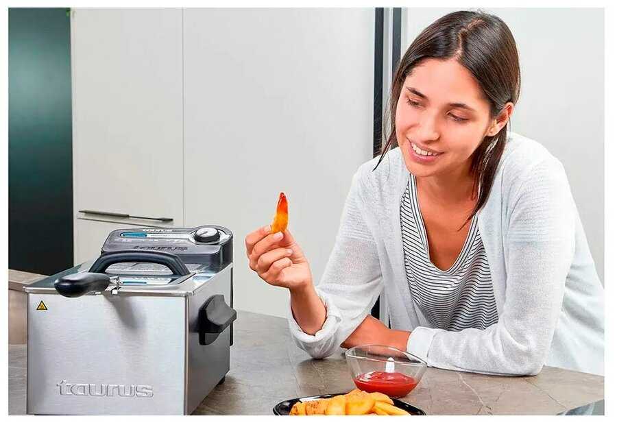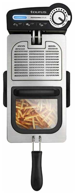 - + Отличная фритюрница. Сделан из нержавеющей стали,в том числе и ёмкость для масла и для защиты тэнов внизу устанавливается сетка-фильтр , больше я у других моделей этого фильтра не видел. Хорошая мощность 2100 Вт, масло заливается 3 литра и до 1 килограмма картофеля . Очень интересно сделана верхняя крышка со смотровым окном , а также защитой от горячего пара. Сам аппарат лёгкий,всё разбирается и наверное самое главное он профессиональный и он предназначен для работы, а значит надёжный в эксплуатации. Сделан в Италии известной и надёжной фирмой Taurus , поэтому и у него гарантия 24 месяца