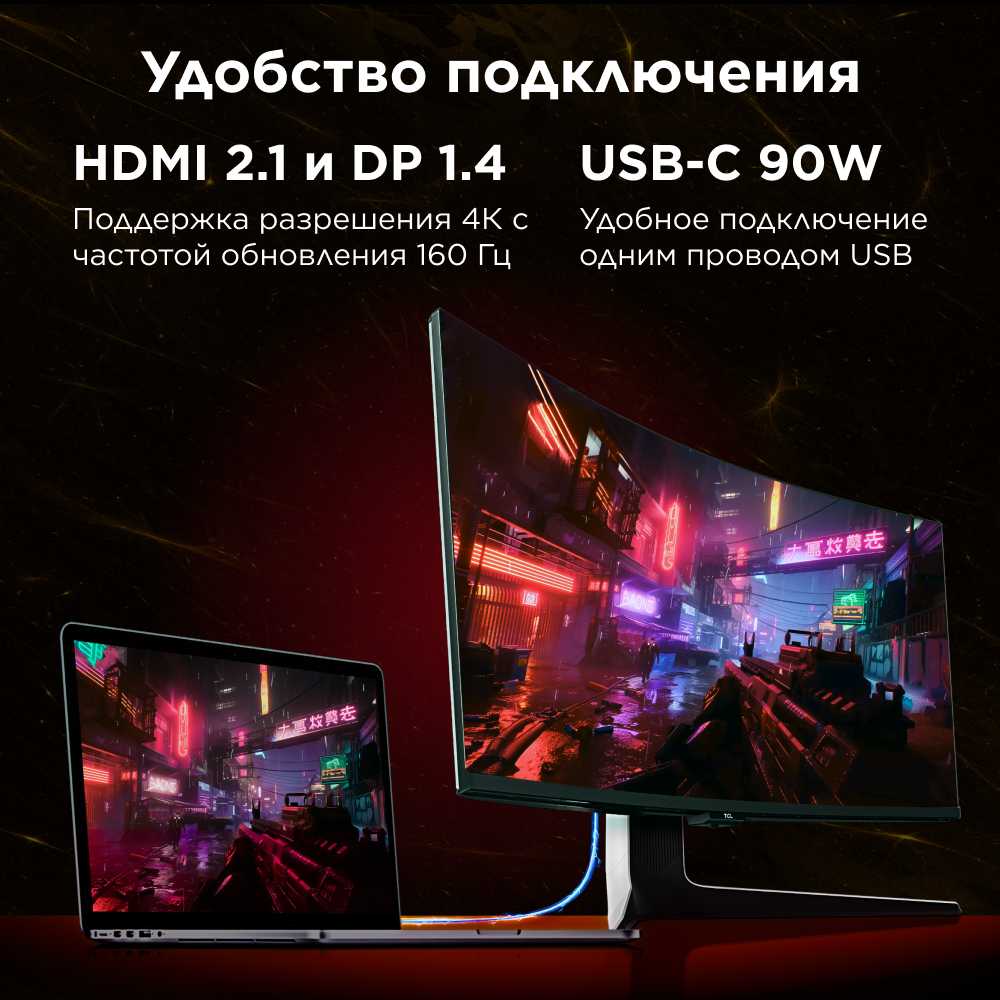 - Технически: 4K 160 Гц, USB‑хаб, подзарядка ноутбука 90 Вт по Type‑C, удобная подставка с продуманным кабель‑менеджментом 🔌 - - - При включённых субтитрах виден неприятный эффект: субтитры могут светиться ярче на светлом фоне и темнеть на тёмном, заметны артефакты локального затемнения
