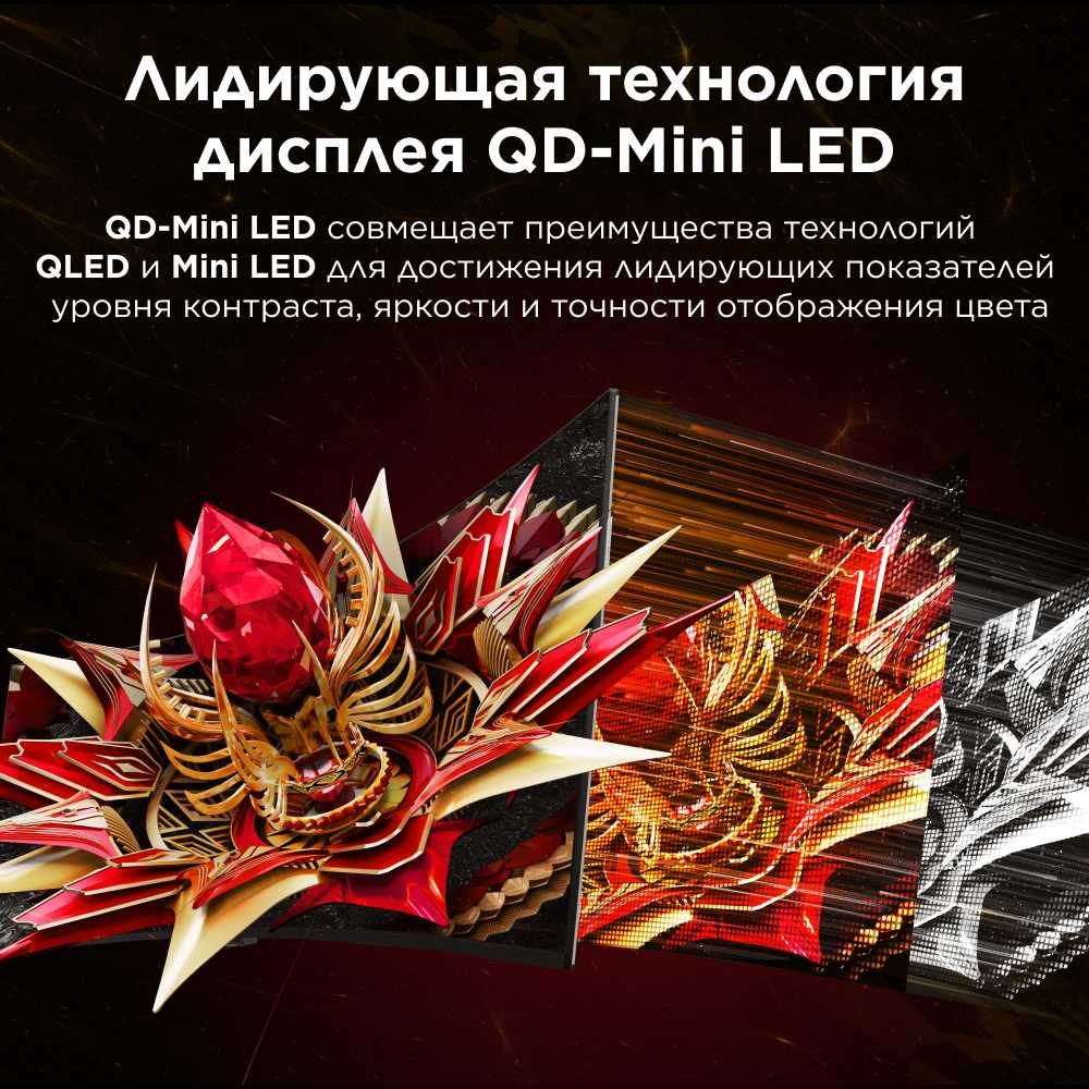 Очень большая яркость, контрастность. Очень здорово смотрится черный цвет, он по-настоящему черный. Матрица VA c MiniLED как на всех телеках TCL Удобная поставка Монитор как бы висит на ней. Само основание подставки как бы находятся за экраном и не мешает поствить клавиатуру перед мониторм
