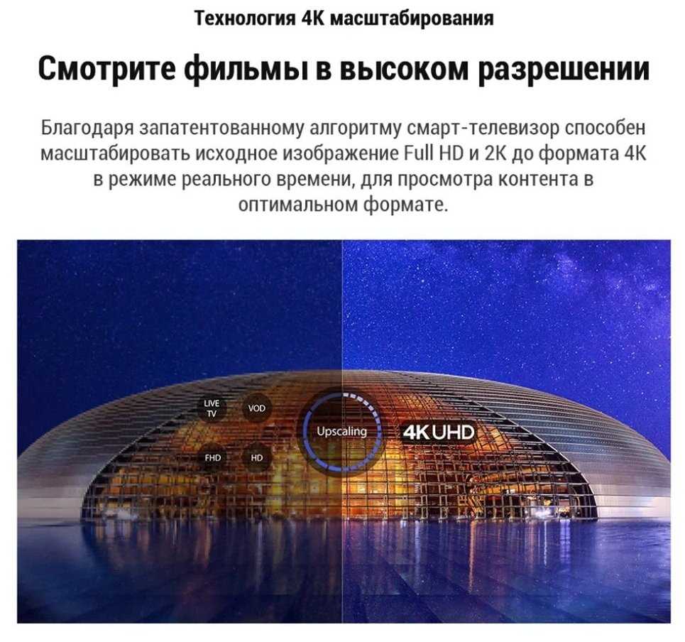 - + Smart Android TV, практичное устройство, хороший звук, разрешение экрана 3840×2160, доступно голосовое управление
