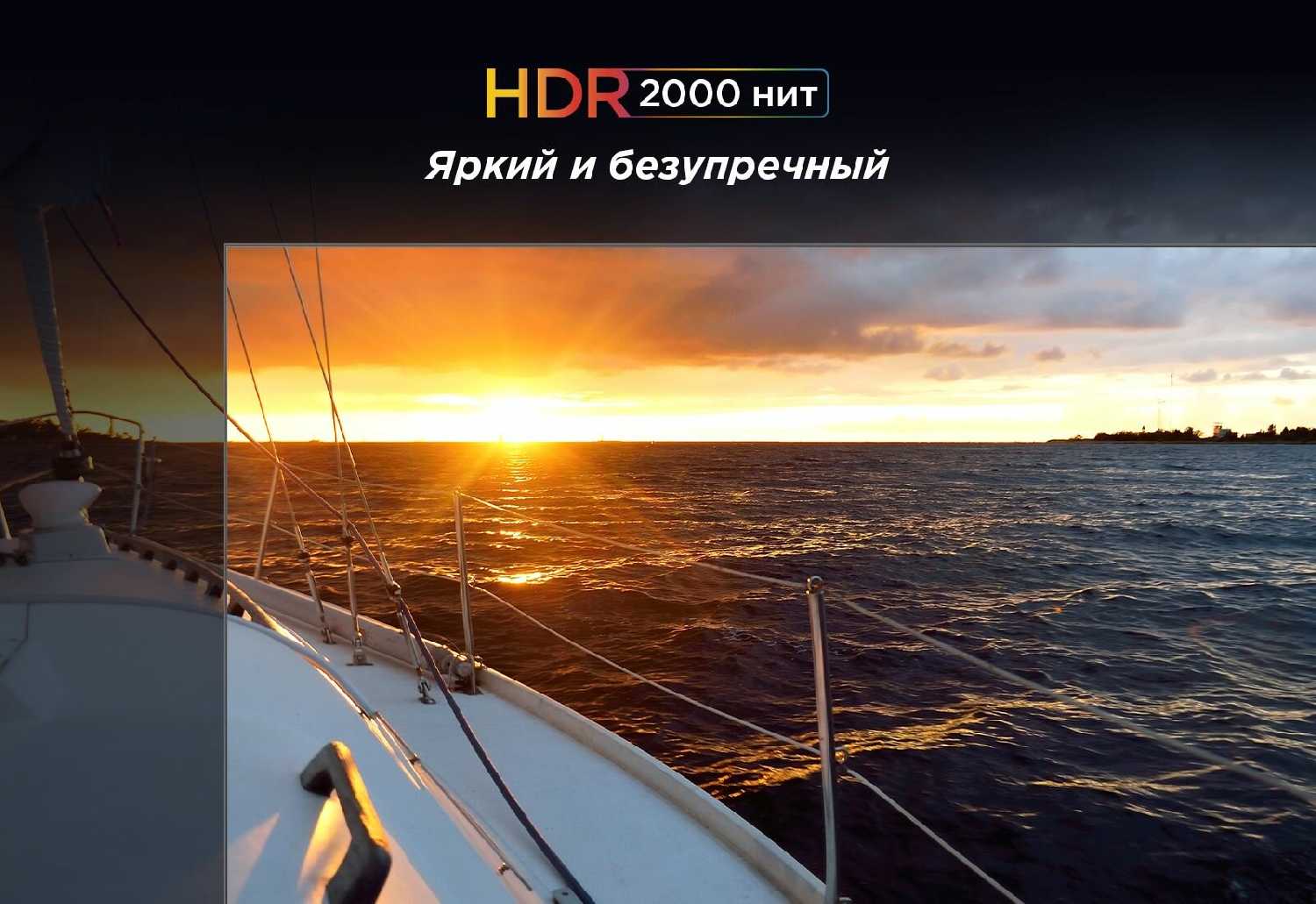 - Пиковая яркость до 2000 нит обеспечивает детализацию в HDR-контенте, особенно в сценах с яркими объектами (например, свет фонарей).