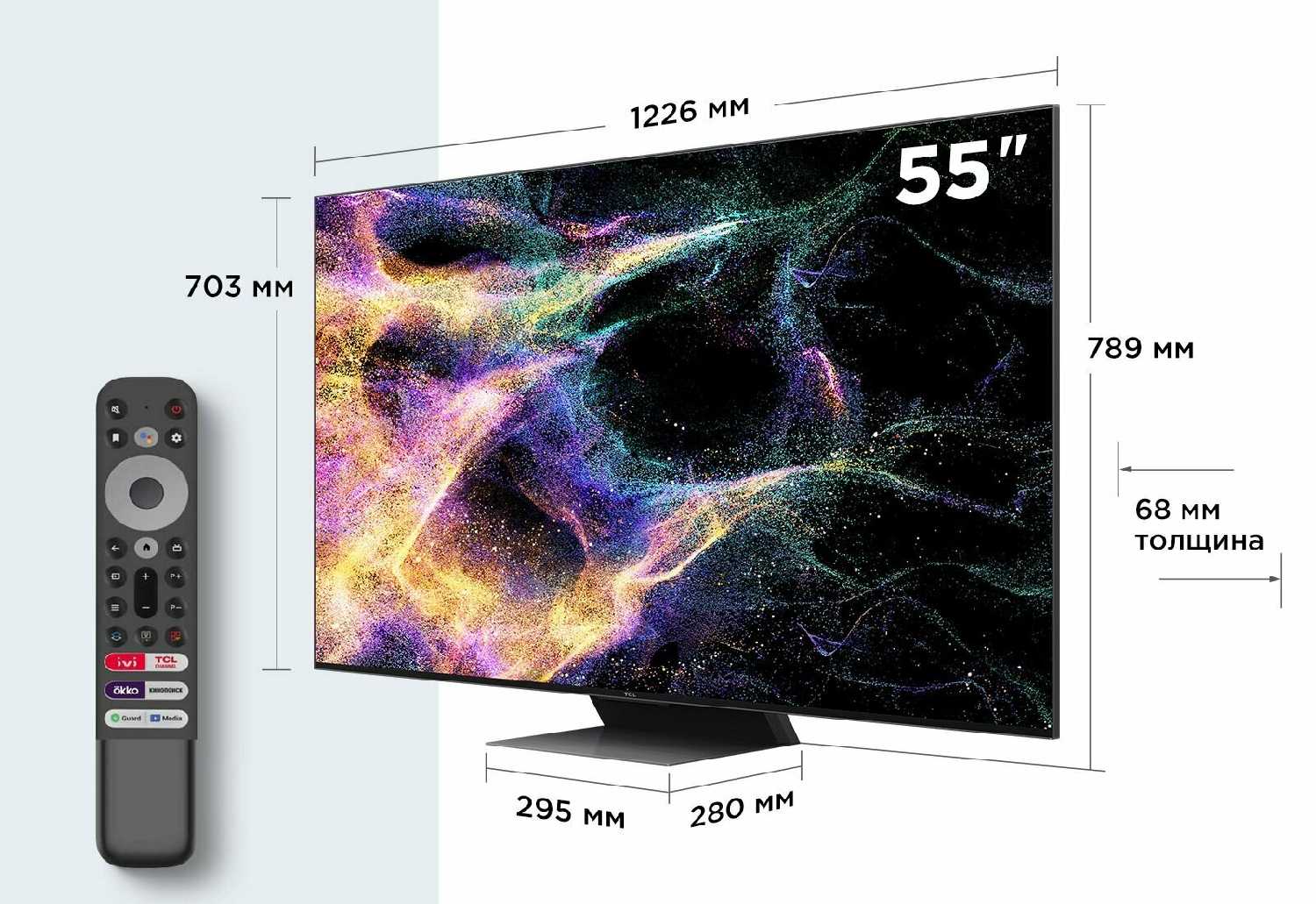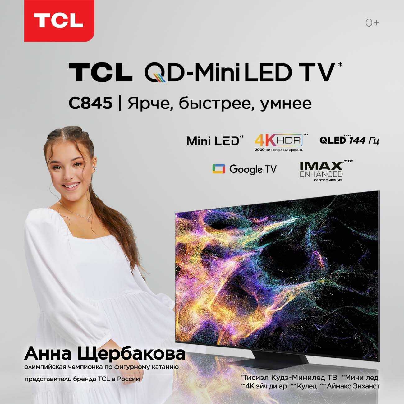 55C845 - miniLED телевизор линейки 2023 модельного года, относимой производителем, как я понимаю, к топу среднего сегмента рынка телевизоров. Сейчас в линейке TCL 2024 года появился телевизор 55с765, который относится хоть и к ниже позиционируемой серии (7-й), но имеет более современный процессор и больше зон затемнения (720 против 480 у 55C845).
