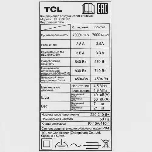 Отзывы о Сплит-система TCL LIFERISE ONF 07