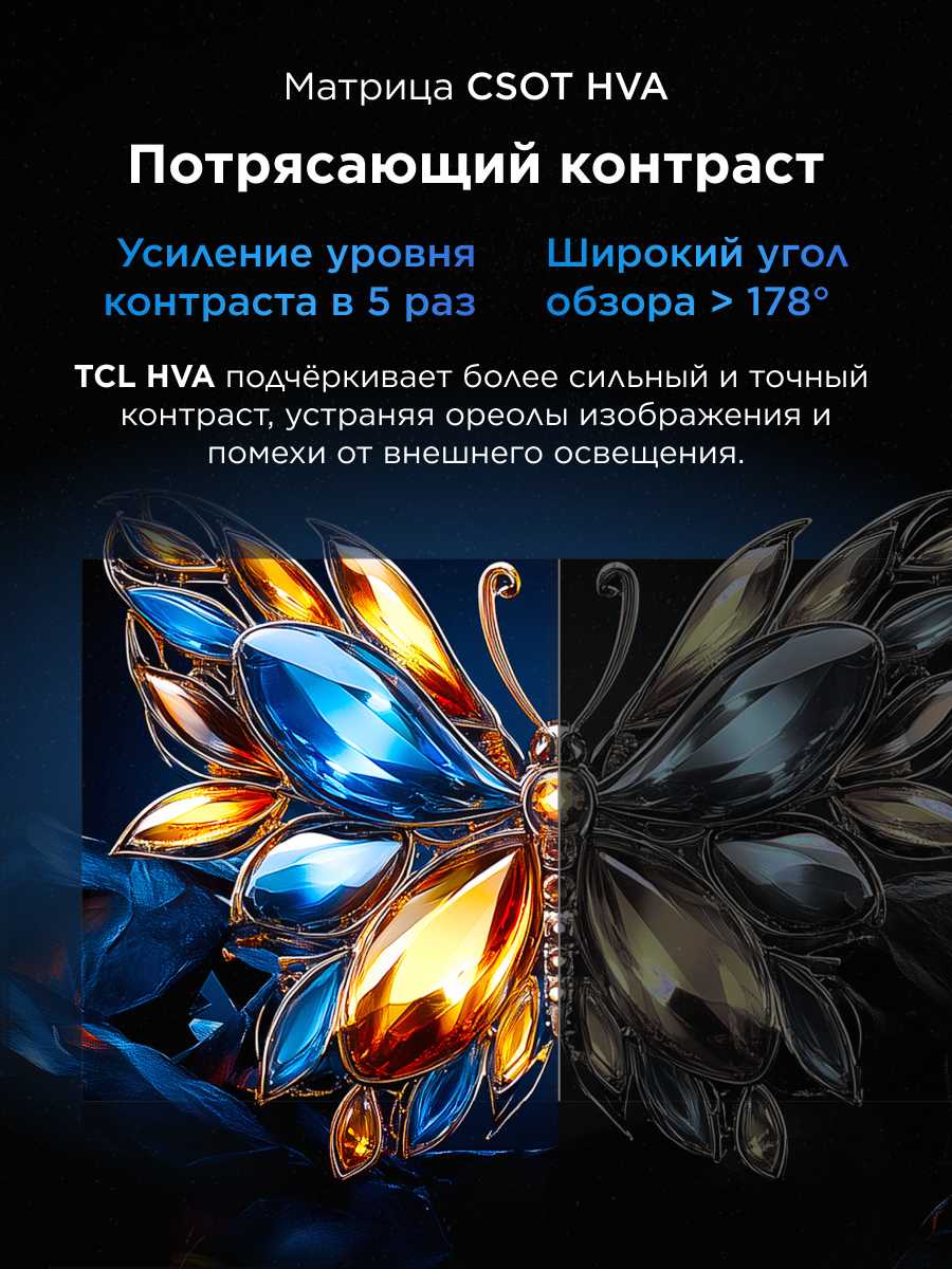 За те деньги, которые можно купить этот тв это классный телек! Кому не хватает черного, добавляйте к цене +20₽ и берите мини Лэд, там я думаю будет всё в порядке. Т8С меня полностью устраивает и для просмотра контента в 2к-4К, в дальнейшем куплю плойку и буду играть на нем. В общем всем рекомендую! Если вы не изощренный гурман, который докапывается до телевизора за 35К, берите и не пожалеете!
