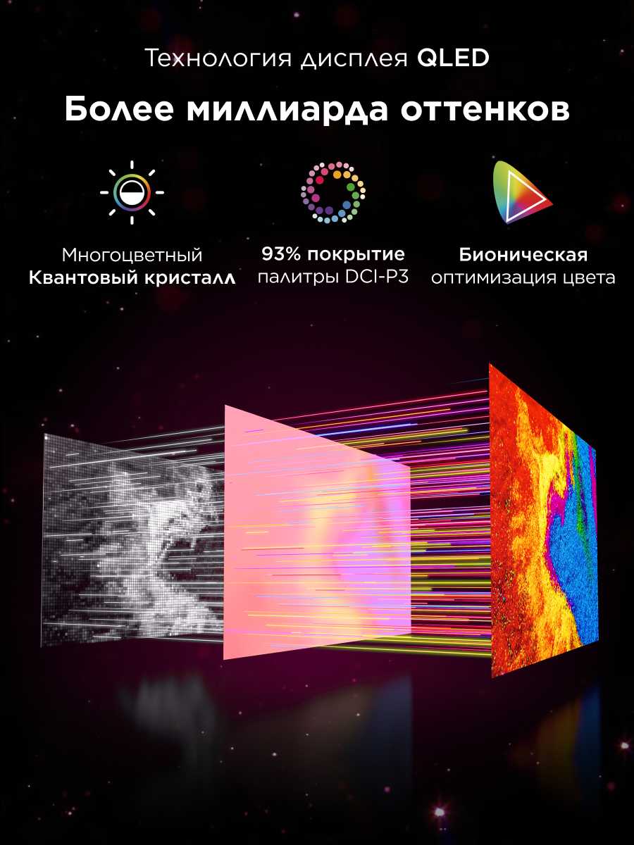 В целом телевизор хороший, особенно если купили его с хорошей скидкой. Технология QLED ощущается, картинка очень приятная глазу. Звук хороший, сабвуфер на задней панели придаёт некоторый объём. Работает быстро, не тормозит.