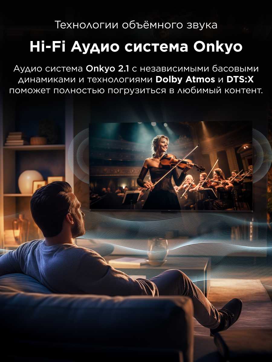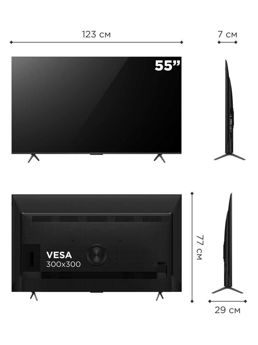 это нечто! после 43х дюймов ощущается огромным ковром, картинка бомба, звук отпад. очень радует что на гугле, сразу накатил приложений со смартфона, впн в том числе и теперь работает ютуб :D настройка гугла и аккаунта заняла 5 минут, всё делается пошагово через телефон. есть голосовое управление. запускал пс5, настройки сразу автоматически выставились максимум. к упаковке тоже нет претензий, хотя картонный короб угол был подран - пенопласта много, распорка из надутого пакета тоже имеется, защитные плёнки от царапин. аппарат по кайфу честно говоря :) ни разу не пожалел