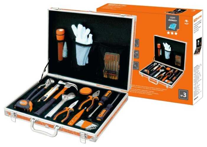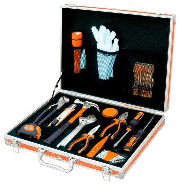 | Инструменты в комплекте : | бокорезы, клещи, клещи переставные, ключ разводной, ключи гаечные, молоток, отвёртки, отвёртки для точных работ, пассатижи, плоскогубцы, трещотка |