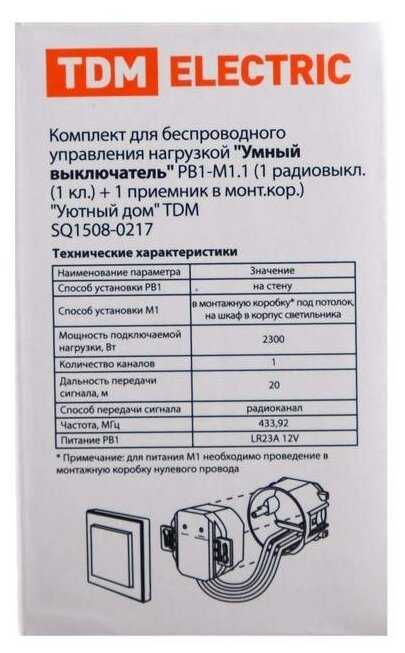 Характеристи TDM ЕLECTRIC Умный РВ1-М1.1 Уютный дом (SQ1508-0217)