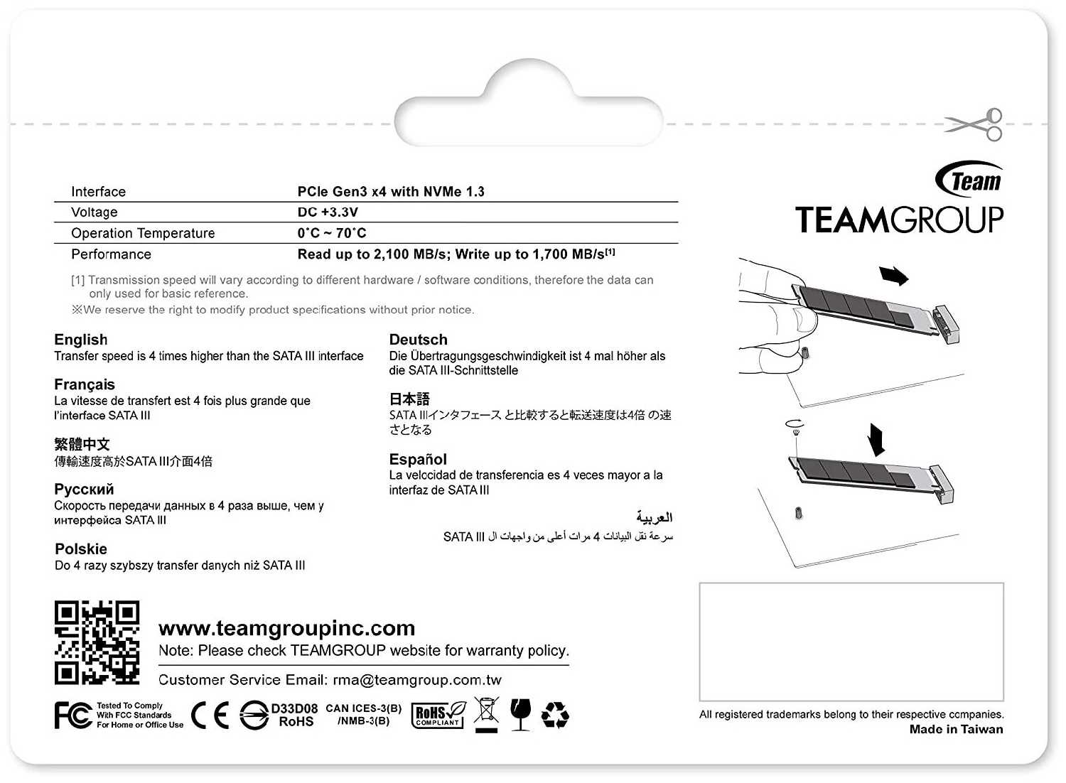- скорость чтения/записи: 2100 МБ/с / 1700 МБ/с