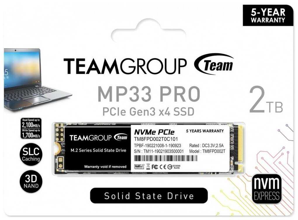 - Ресурс записи до 2500 ТБ (для 2 ТБ моделей) при умеренном использовании.