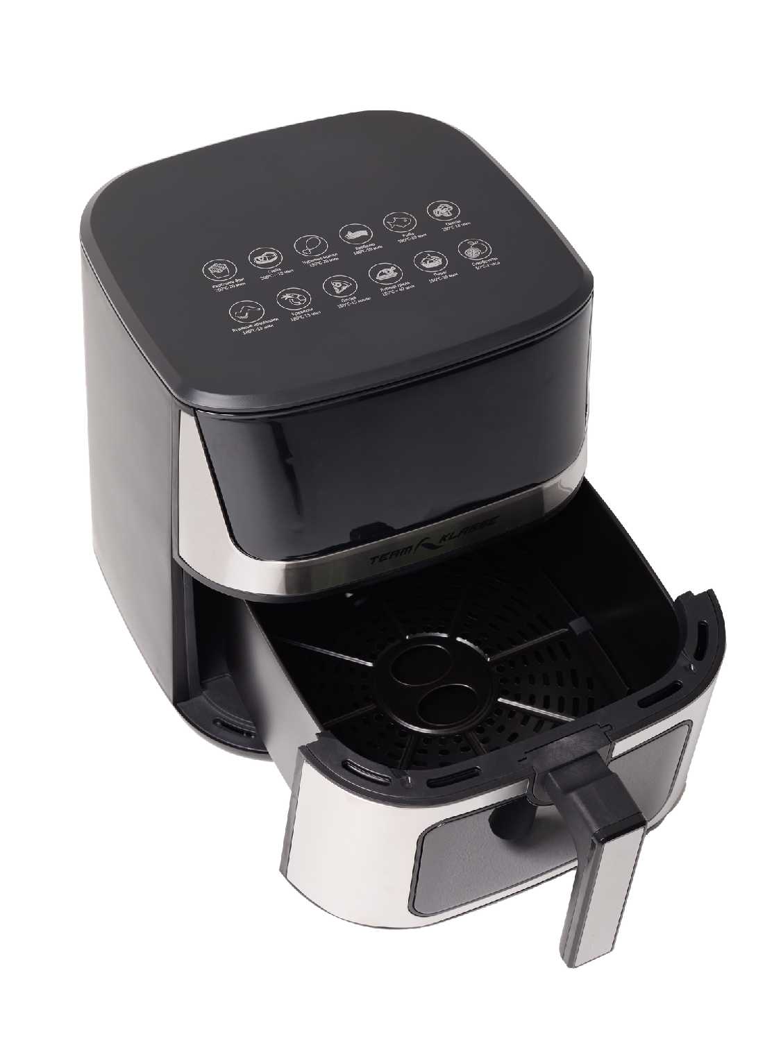 - Настройка температуры (до 200°C) и времени (до 60 минут) осуществляется за несколько касаний.