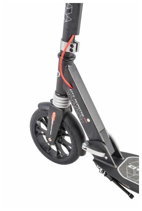 - - Ручной тормоз даже для ребёнка малоэффективен. Элементы дискового тормоза на заднем колесе сильно выступают - ребёнок всё время цепляется о них ногой при отталкивании. "Жидкая" подножка и тарахтит при езде. Места выхода тормозного тросика из корпуса самоката острые и режут защиту тросика. Все фиксаторы колонки руля, в том числе и место складывания, приходится затягивать с большим усилием - иначе люфтят и тарахтят.