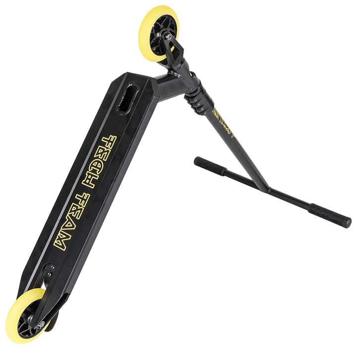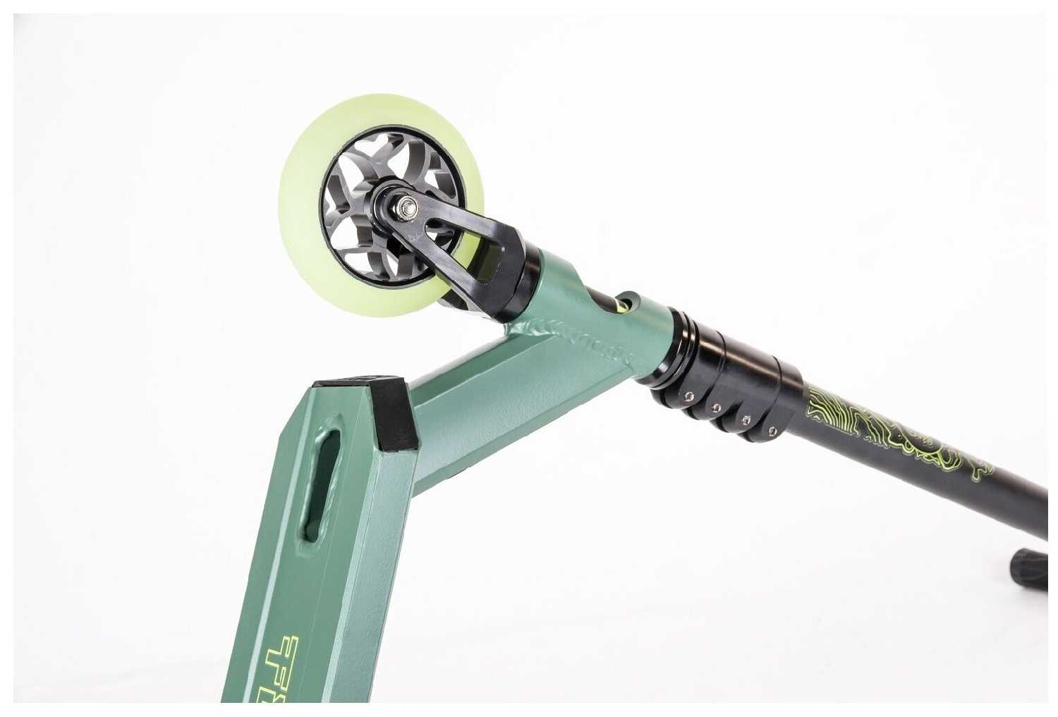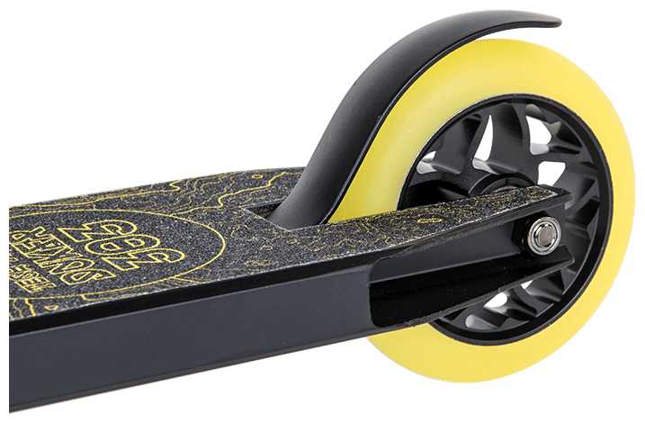 - + Простая сборка, чувствуется "собранность". Нет ощущения расхлябанности в узлах. Я не эксперт, но переход из класса "просто самокат" в "трюковый" ощущается. Ребенок доволен. Можно рекомендовать как недорогой первый трюковый самокат что бы понять тему.