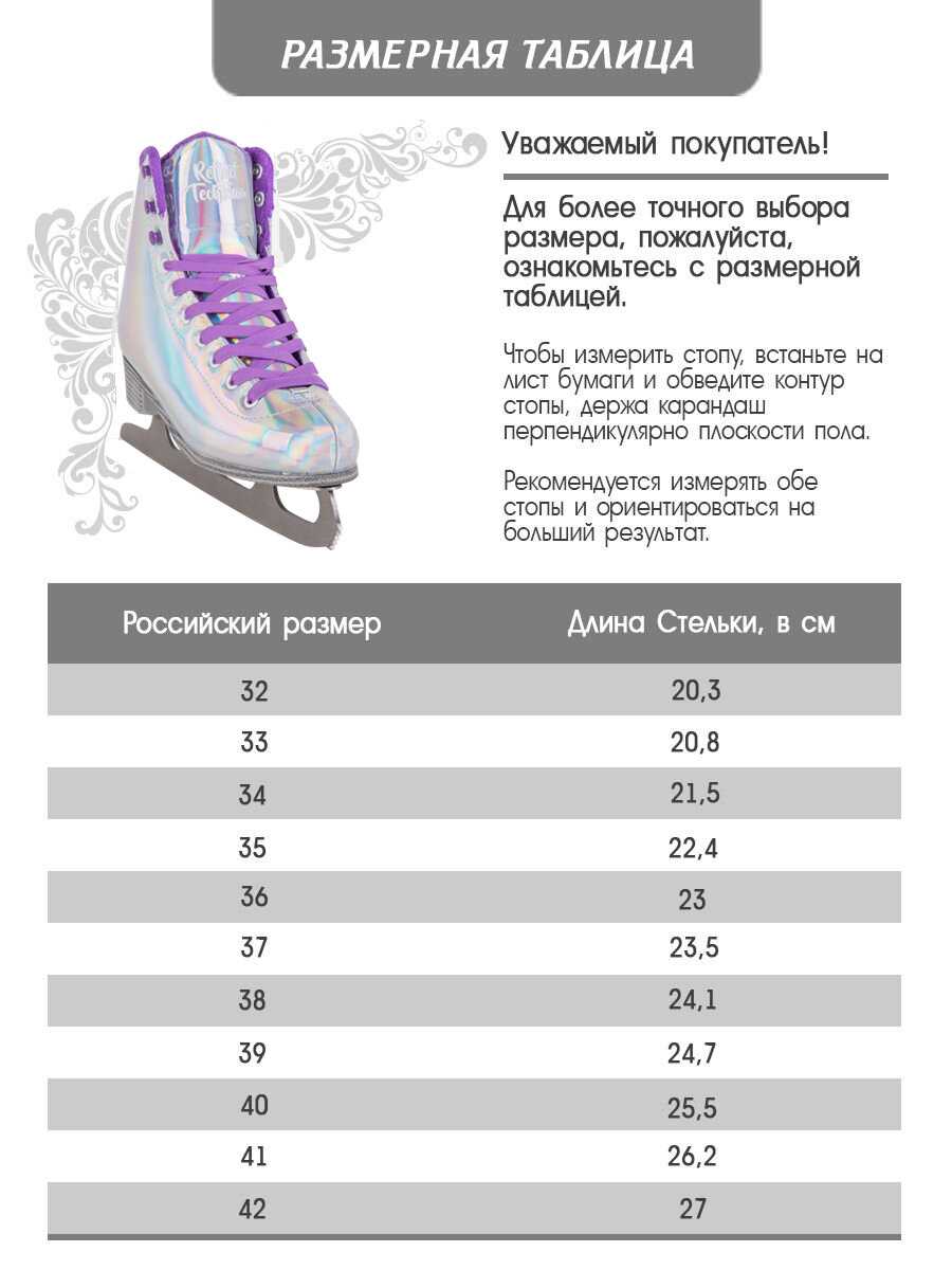 Очень люблю книгу Серебряные коньки. Долго и уныло лопатила поиск на свой 42 растоптанный (стопа 27 см) и уже думала, что только мужские модели коньков мой вариант, и тут увидела их и поняла - вот они, мои серебряные коньки! Размер отлично подошёл, очень теплые, вмеру жесткие, как и нужно, я просто сплю и вижу как буду кататься в них!