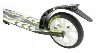 - + Отличный, крепкий самокат. Очень удобно, что есть подножка.