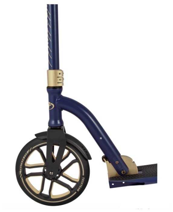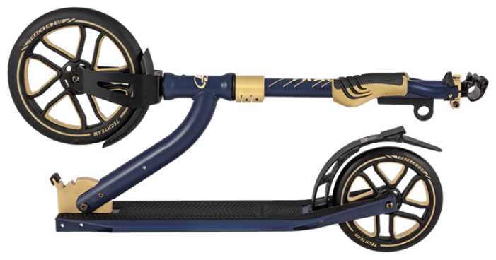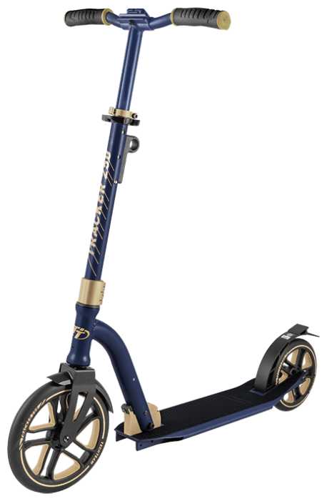 - + Большое колесо спереди дает хороший накат.Все таки 250 этого вполне достаточно.Люфт руля можно убрать зажимом.Цвет сине-золотой.Один раз оттолкнулся и едешь.Особенно это хорошо на ровном асфальте заметно но и по плитке едет мягко.Крыло-тормоз оттормаживает мягко и нет боязни слететь на высокой скорости