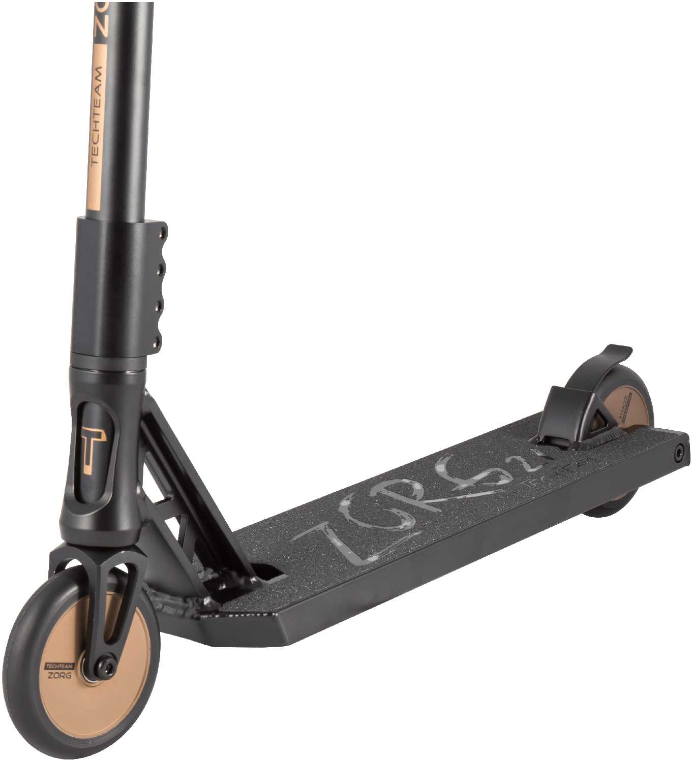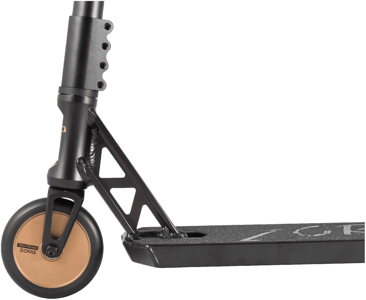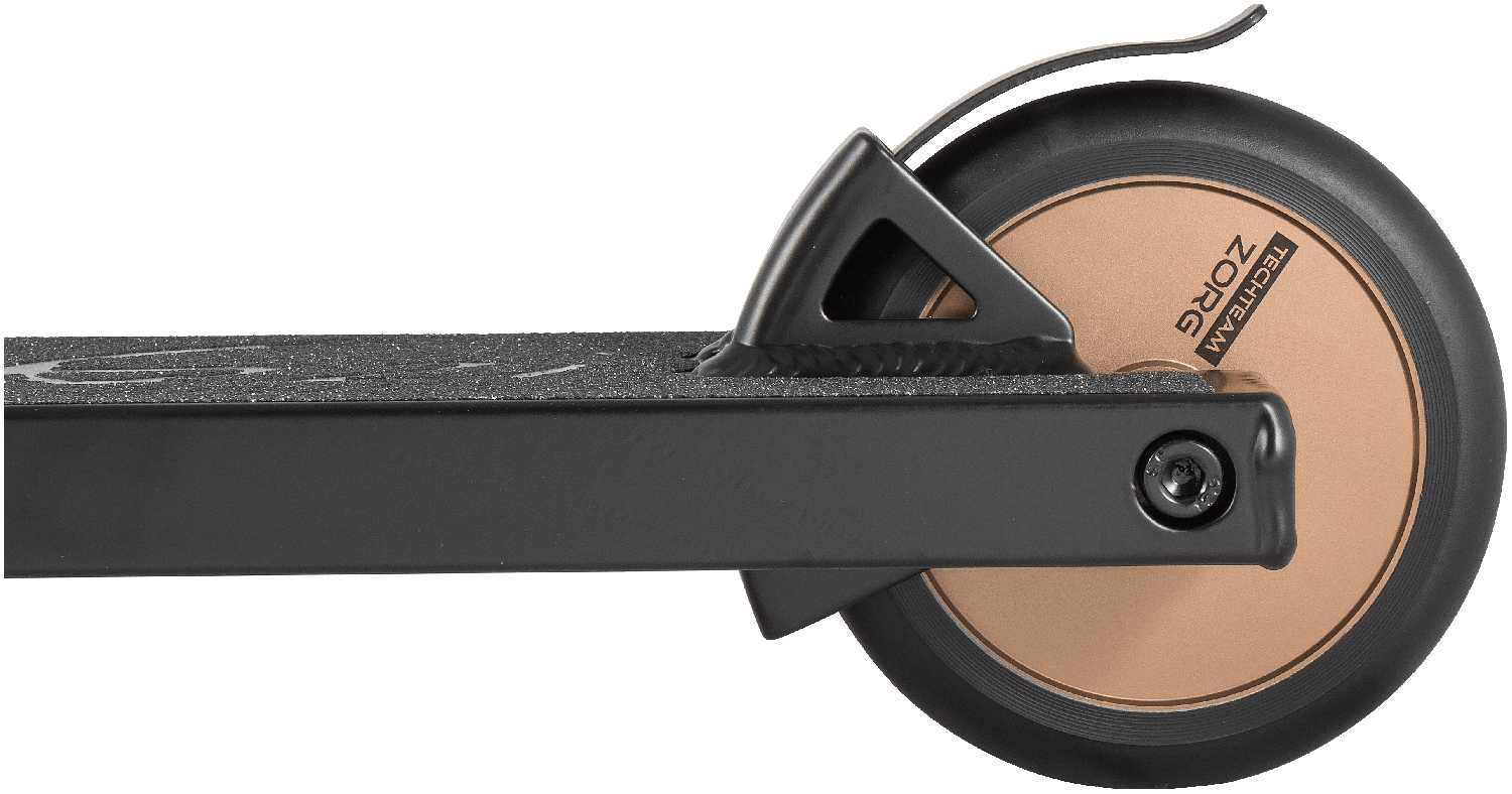 Сразу снимайте тормоз, потому что на таком самокате он не нужен и гремит. По шкурке советую пройтись феном, чтобы лучше прилипла. У TechTeam со шкурками такое бывает.