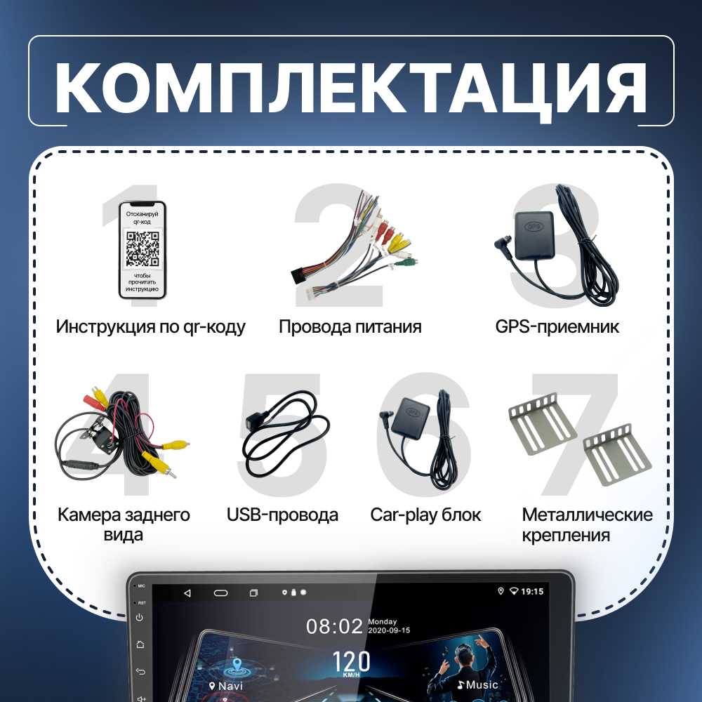 - Полный комплект с камерой заднего вида и микрофоном