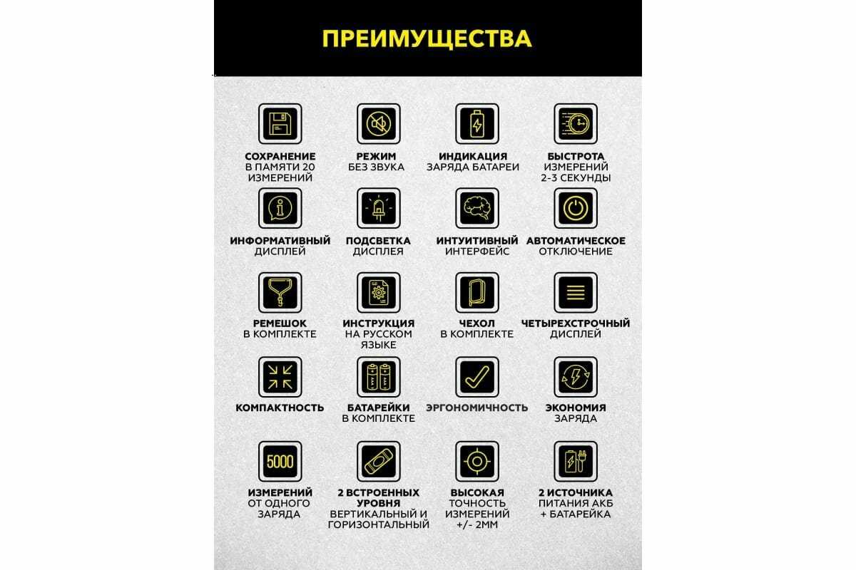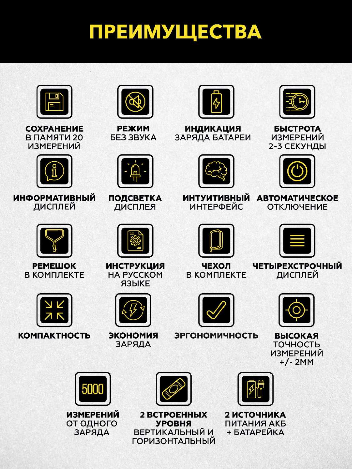 разные точки отсчета помогают в самых неудобных местах. за свою цену достойный девайс - - может быть хотелось более качественный пластик прибора, но отсюда и цена, ниже аналогичных по характеристикам дальномеров